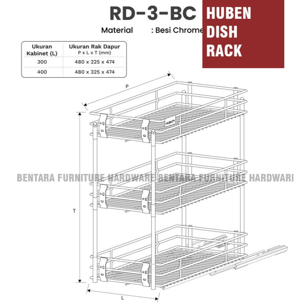 ================================= CATATAN PENTING SEBELUM ORDER : PRODUK INI TERSEDIA AKSESORIS DIJUAL TERPISAH : KERANGKA BOTOL (HUBEN KB) DAN KERANGKA PIRING (HUBEN KP ) DI LINK TERPISAH ================================= RAK DAPUR HUBEN HUBEN RD-3 400 BC DIMENSI RAK (PANJANG / LEBAR / TINGGI ) : 480 X 325 X 474 (MM) MATERIAL : BESI CHROME PATOKAN LEBAR PINTU LUAR KABINET : 400MM (40CM) INCLUDE : REL TANDEM SLOW MOTION HARGA PER SET BERIKUT DUS BAWAAN ====================================== CATATAN PENTING SEBELUM ORDER : PRODUK INI RAK DAPUR BASIC SAJA , PRODUK INI TERSEDIA AKSESORIS DIJUAL TERPISAH : KERANGKA BOTOL (HUBEN KB) DAN KERANGKA PIRING (HUBEN KP ) DI LINK TERPISAH